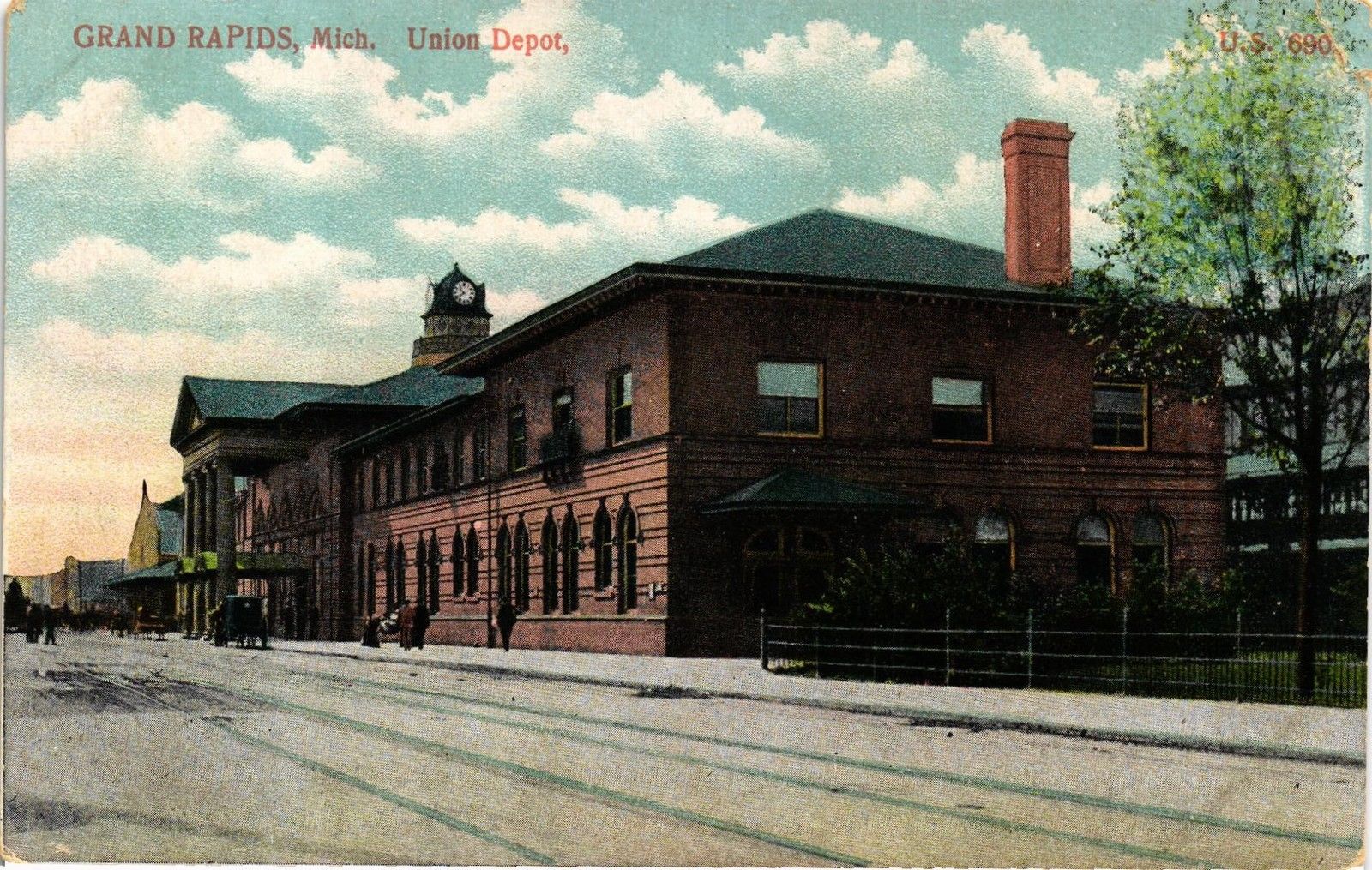 DR JIM STAMPS US GRAND RAPIDS RAILROAD DEPOT MICHIGAN POSTCARD MADE IN GERMANY