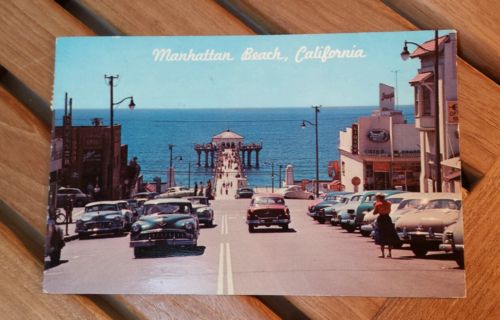 Title (ebay affiliate link): Vintage Manhattan Beach California Pier Old Cars Main Street Postcard