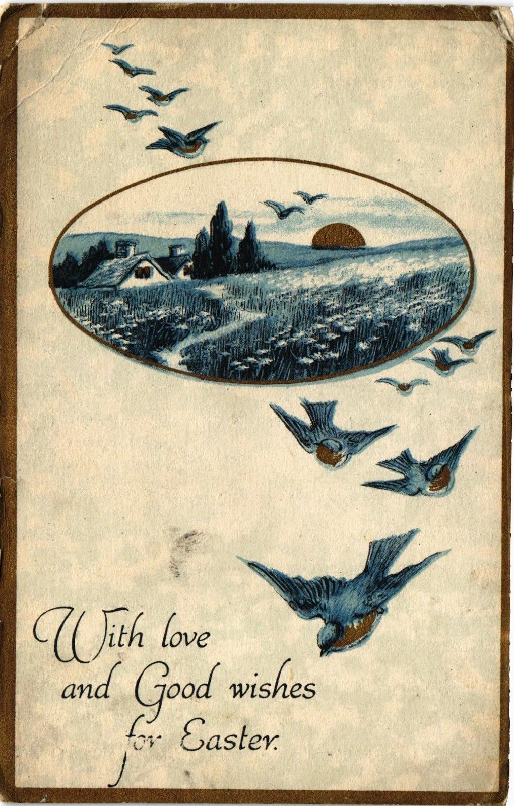 DR JIM STAMPS US BIRDS LANDSCAPE EASTER POSTCARD GIBSON LINES 1918 BENT CORNERS