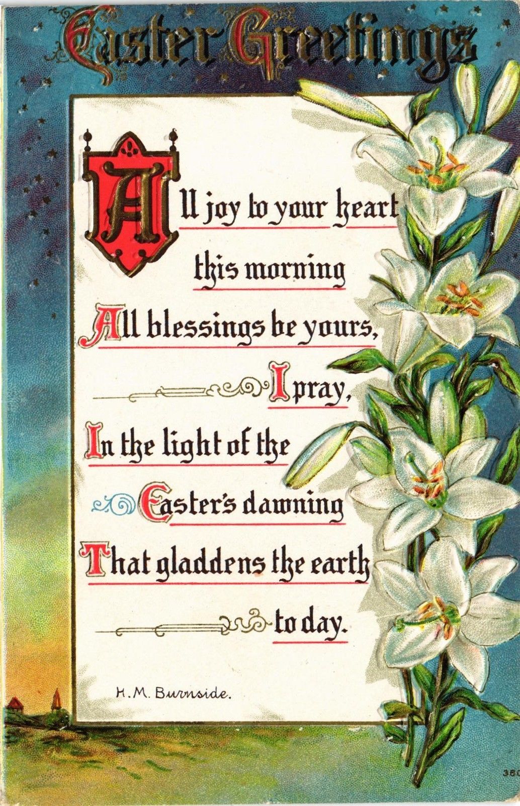 Title (ebay affiliate link): DR JIM STAMPS US DECORATIVE VERSE LILIES EASTER EMBOSSED POSTCARD 1911