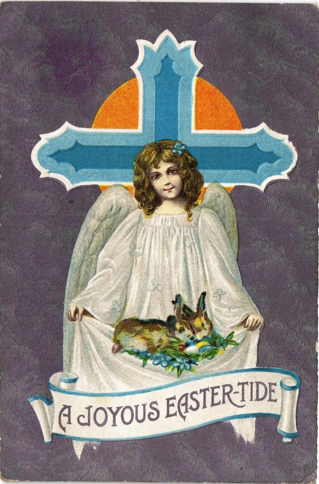 Title (ebay affiliate link): DR JIM STAMPS US LITTLE GIRL ANGEL BUNNIES CROSS EASTER POSTCARD 1910 EMBOSSED