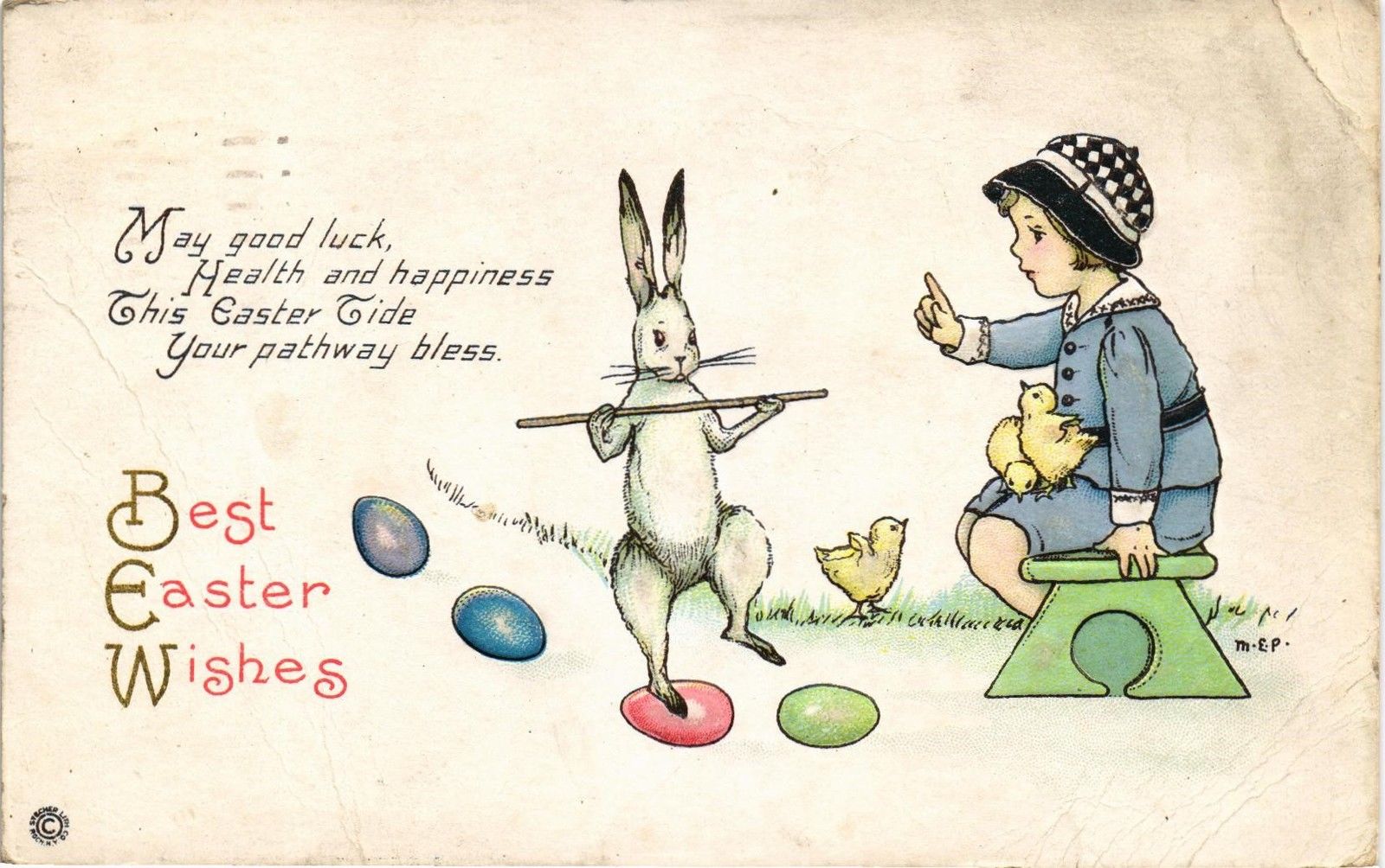 Title (ebay affiliate link): DR JIM STAMPS US BUNNY TRICKS CHILD CHICKS MEP SIGNED EASTER POSTCARD 806 F