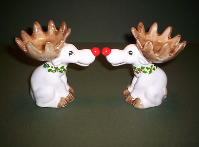 PR. FITZ & FLOYD CHRISTMAS MOOSE CANDLE HOLDERS MCMLXXVI (1976)