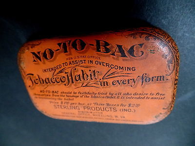 ANTIQUE NO-TO-BAC TIN LITHO CONTAINER MEDICAL KICK TO TOBACCO HABIT WHEELING WV.