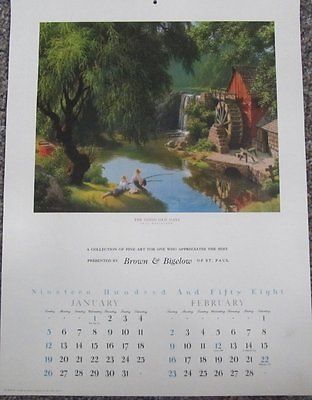 1958 Wall Calendar, Unused, w/ Art by Paul Detlefsen