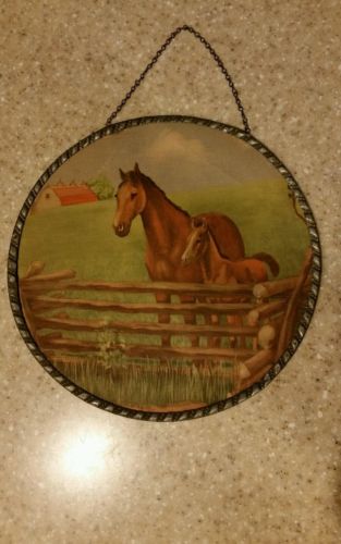 Antique round hanging horse picture from Germany.