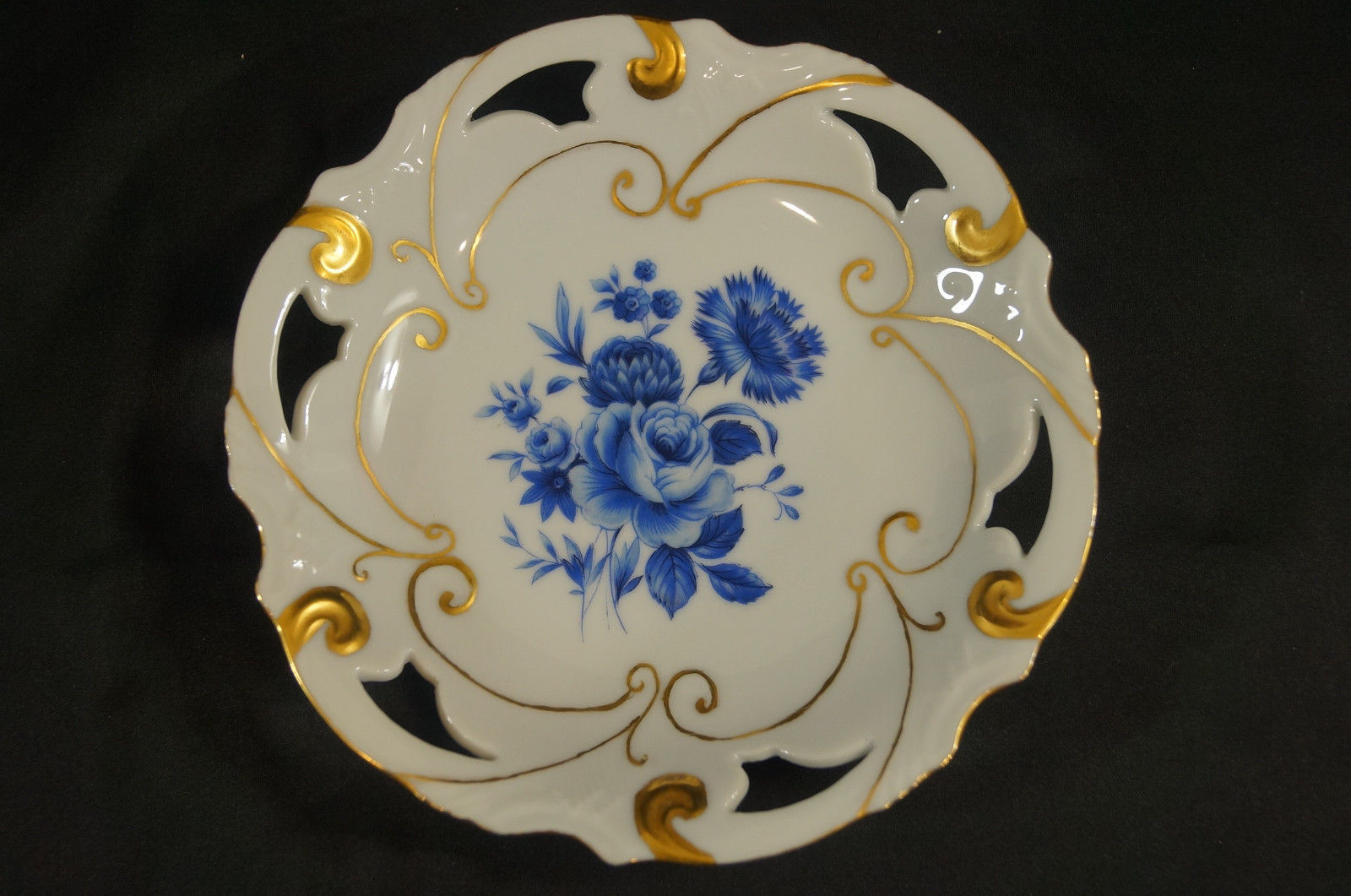 Title (ebay affiliate link): Antique Reticulated German Blue Floral & Gold Gilt Dessert Plate Marked Voit