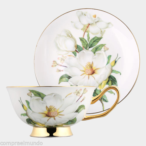 Title (ebay affiliate link): 2Pcs Flower Green Leaves Gold-Rimmed Bone China Tea Cup Saucer Set Xmas Gift