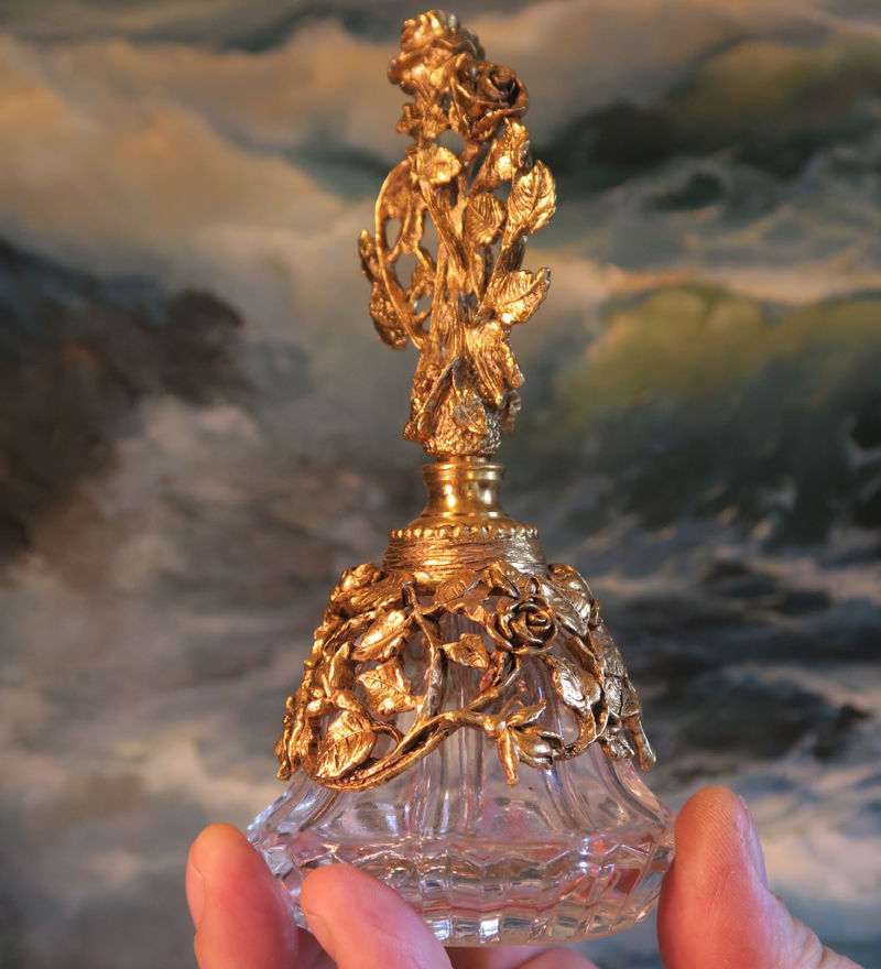 Title (ebay affiliate link): Ormolu Perfume Bottle MATSON Rose Vintage Vanity JEWELED glass gilt marked old