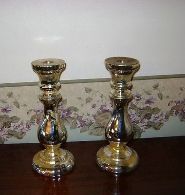 1800's 11 1/2"Silver Mercury Glass Candle Holders Victorian
