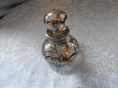 Antique Silver Overlay Scent/Perfume Bottle With Stopper 3" Tall