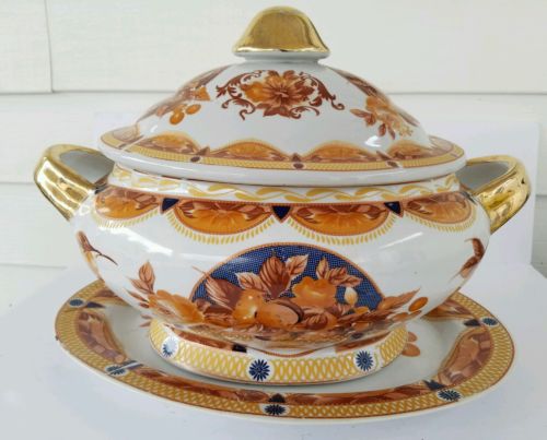 Title (ebay affiliate link): Antique Covered Dish With Lid Platter Tureen Vegetable Gold European Harvest