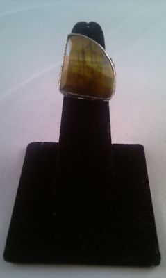 Tiger's Eye Gemstone Antique Silver Ring, Size - 7