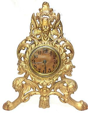 Antique 1890's Cast Iron Gilt Cherub Western Sessions Shelf Mantle Clock WORKS