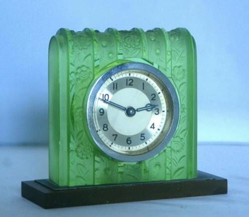 ANTIQUE FRENCH ART DECO GREEN GLASS & BAKELITE CLOCK