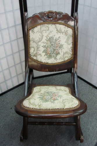 Title (ebay affiliate link): Antique Rocking Chair Dark-Stained Pine Floral Print Upholstery Rose-Carving