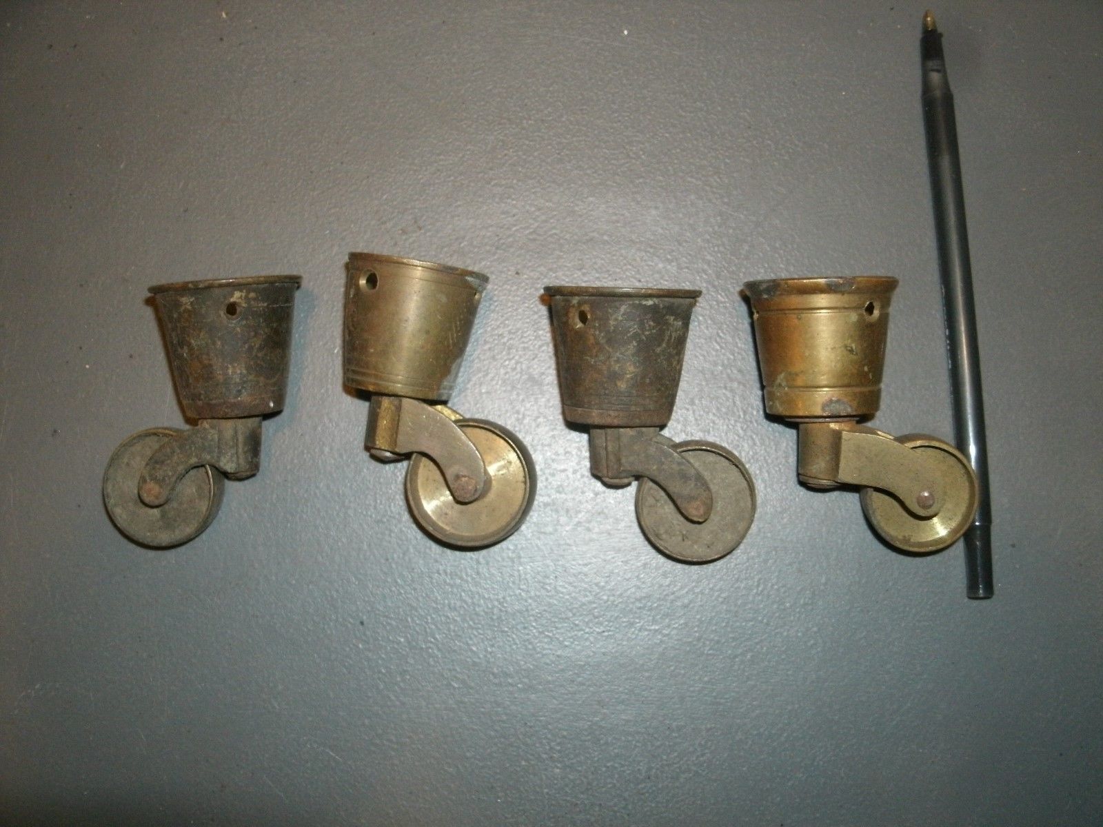 4 Vintage Casters Lot Brass Caster Wheel Steampunk Industrial Hardware Parts .