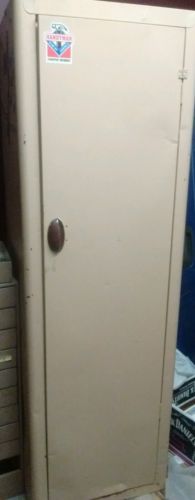 Vintage steel metal iron tool storage industrial single door cabinet shelves