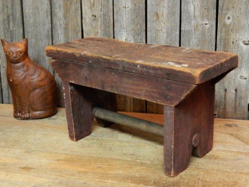 Title (ebay affiliate link): Antique Primitive Barn Red Wood Farmhouse Riser Stool Bench AAFA