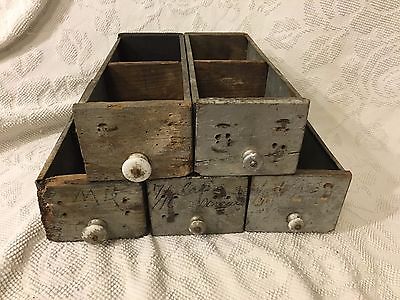 Antique Metal Wood Cabinet Drawers, Primitive, Vintage Porcelain