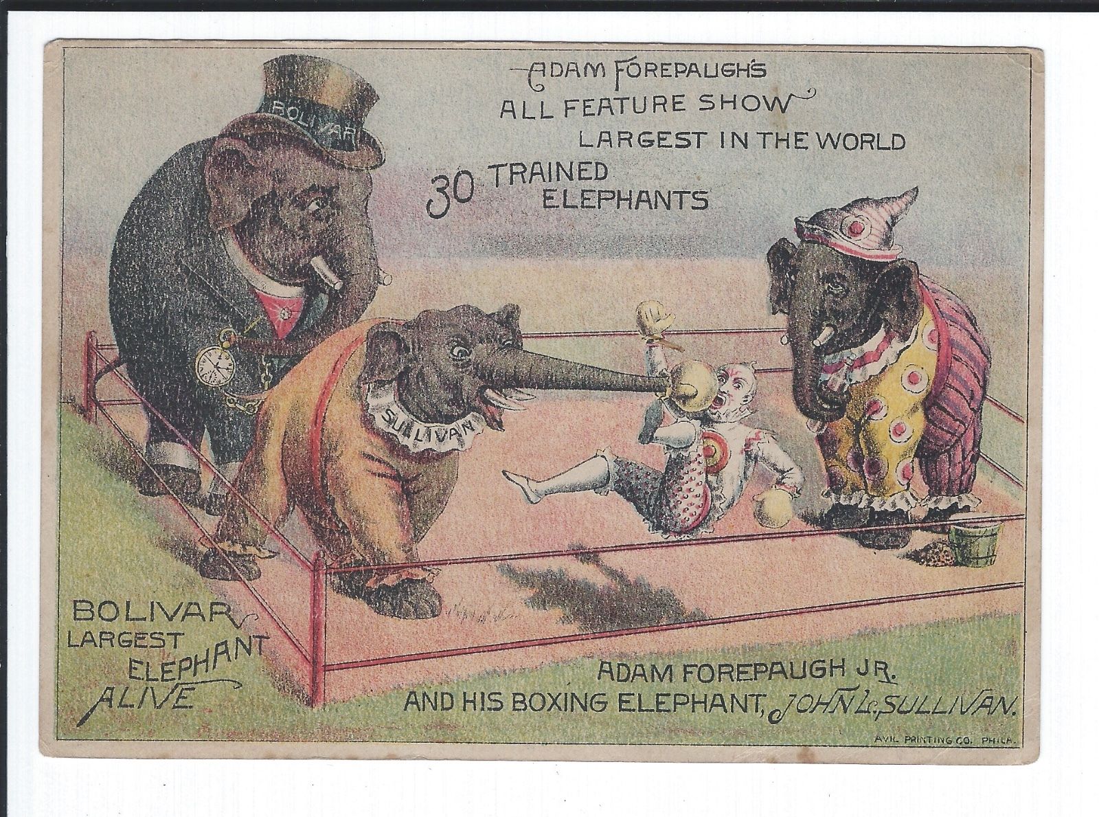 Title (ebay affiliate link): Adam FOREPAUGH'S Circus Elephants Boxing Advertising Trade Card