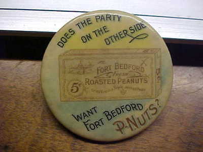 PA BEDFORD FORT BEDFORD PEANUTS Celluloid Advertising Pocket Mirror