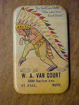 Van Court Gotzian Shoe St Paul MN Indian Celluloid Advertising Pocket Mirror