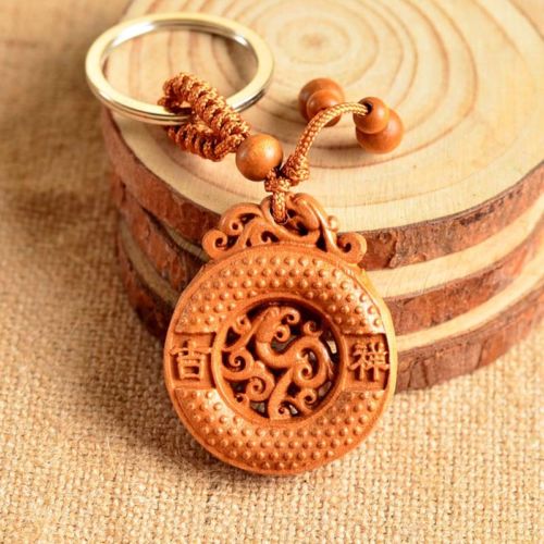 Title (ebay affiliate link): Wood Carving Chinese Feng Shui Geomancy Round Dragon Statue Key Chain Ring