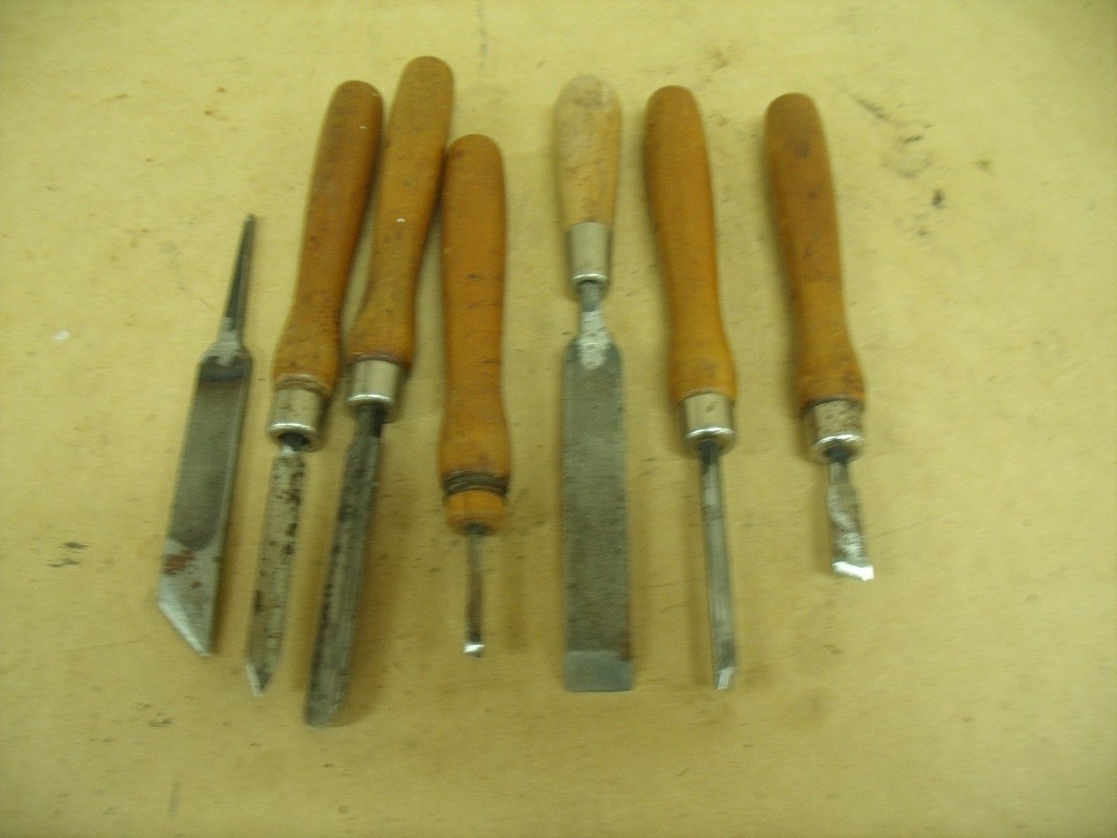 Title (ebay affiliate link): Lot of Wooden Hadled Steel blade wood Lathe Hand Tools