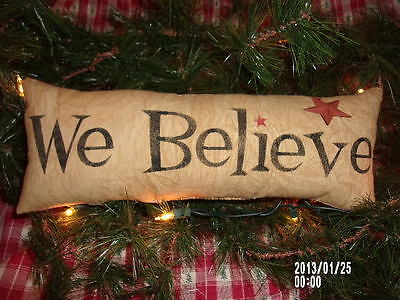 PRIMITIVE CHRISTMAS*WE BELIEVE*PILLOW*RED TICKING,PRIMITIVE CHRISTMAS DECORATION