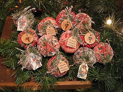 ~ 12 RAG BALLS SNoWMaN SNoWFLaKe Christmas Primitive Warm Winter Wishes Sign Tag
