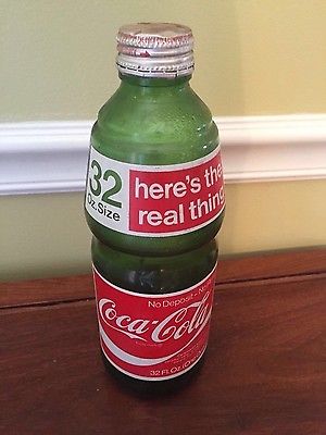 Title (ebay affiliate link): VINTAGE RARE COCA COLA HERES THE REAL THING 32oz 1970s ACL GREEN BOTTLE