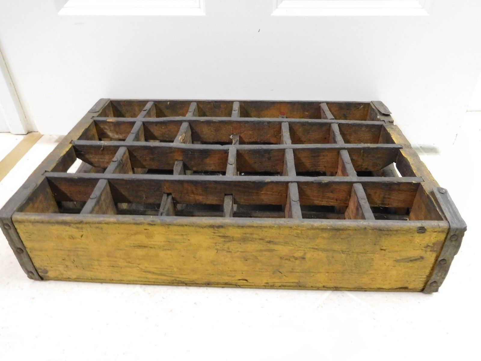 Title (ebay affiliate link): Vintage Yellow Wood Wooden COCA-COLA COKE 24 Bottle Holder Crate