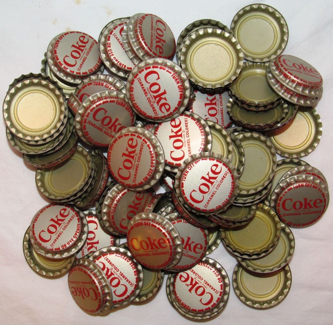 Title (ebay affiliate link): Coca-Cola 100 Each Gold Coke Bottle Caps Turn Off or Use Opener Caramel Colored