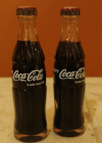 Title (ebay affiliate link): 2 Miniature 3 inch Full Glass Coke Coca-Cola Bottles Metal Caps