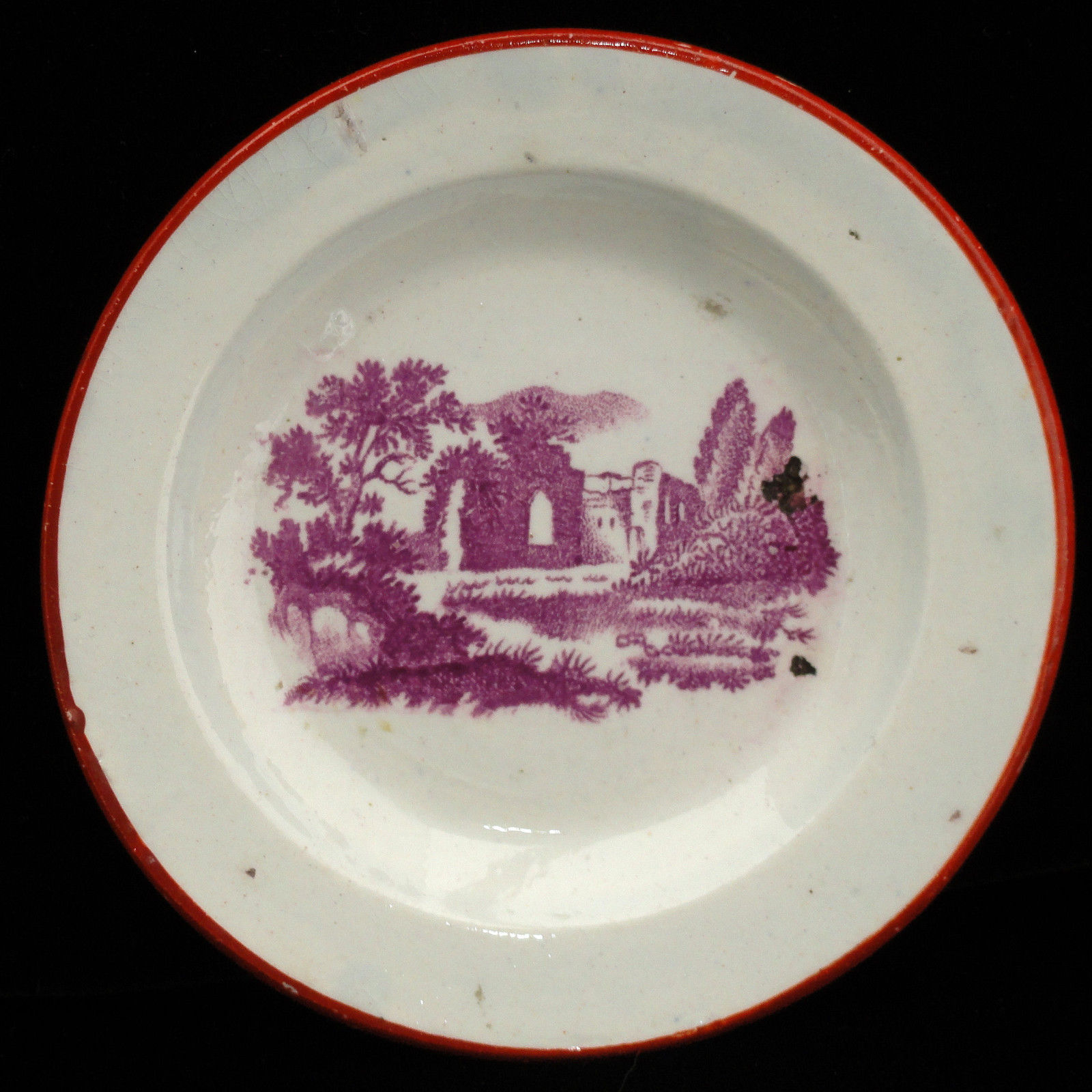 RARE Miniature Creamware Cup Plate Hackwood Abbey Ruins 1830 Staffordshire