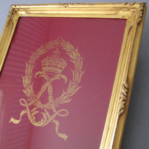 Antique c1900 Petite Carved GILT Wood Frame LOUIS XIV Monogram GILT Illluminated