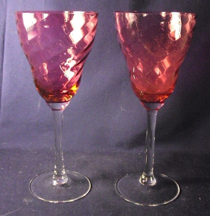 Water goblet cranberry glass bowl swirl optic pair