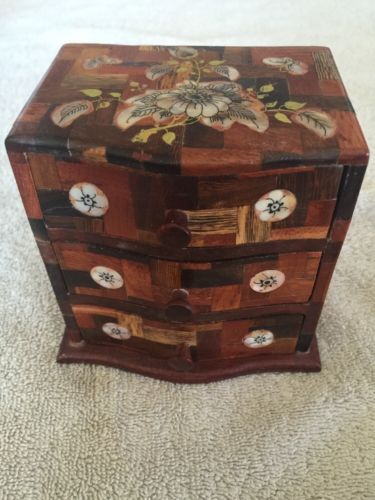 Title (ebay affiliate link): Miniature Doll Thuya Wood Jewellery Box Inlaid With Mother Of Pearl Morocco