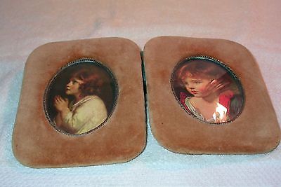 2 Vintage,Convex Glass,Velvet Framed, Silk Pictures,Classic Paintings