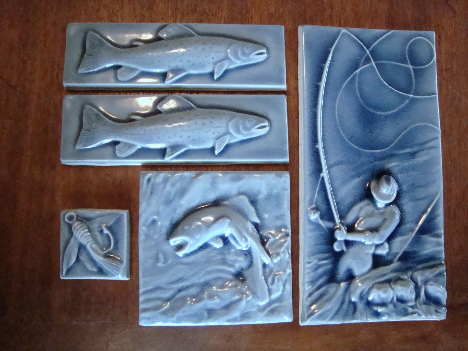 Title (ebay affiliate link): 5 Ceramic*High Relief*Fly Fishing*Decorative Accent Tiles*Fishing Themed*