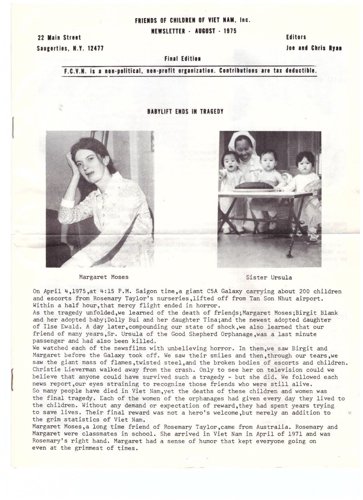 Title (ebay affiliate link): FRIENDS OF CHILDREN OF VIETNAM AUGUST 1975 NEWSLETTER ROSEMARY TAYLOR'S NURSERIE