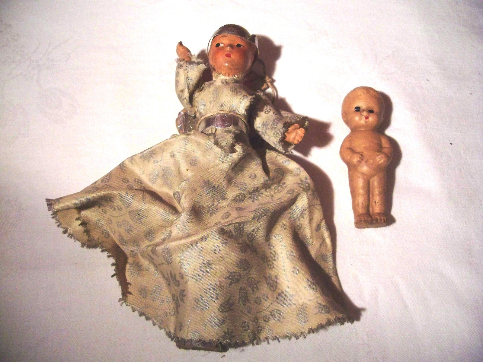 Ye OLD Bisque TREE TOPPER ANGEL & Small Bisque Doll~c1930~Hand Made
