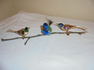 (3) Vintage Hand Blown German Mercury Spun Glass Bird Christmas Clip Ornaments