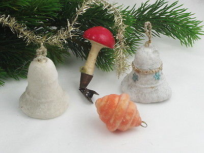 Title (ebay affiliate link): 4 x Vintage Spun Cotton, Christmas Ornament,bell,toadstool on the rack,ornament