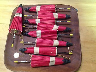 9 Vintage Parasol/Umbrella crepe paper Christmas ornaments, they open!