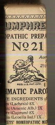 HUMPHREYS HOMOPATHIC #21 ASTHMATIC PAROXYSMS Unopened