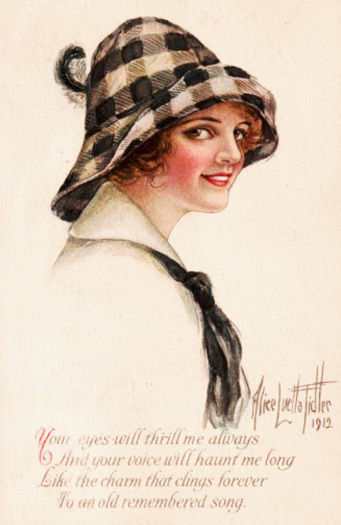 Title (ebay affiliate link): A/S ALICE LUELLA FIDLER 1912 LOVELY ART DECO LADY BEAUTIFUL IMAGE LARGE HAT PC