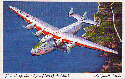 Linen Airport Postcard: LaGuardia in New York show Pan American Yankee Clipper