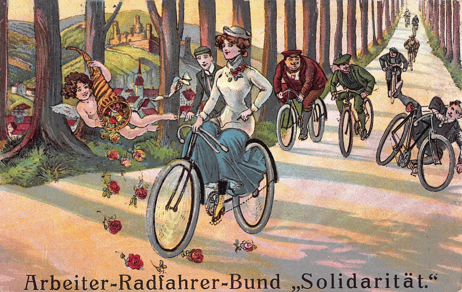c1910 "ARBEITER RADFAHRER BUND SOLIDARITAT" WORKER'S CYCLE CLUB~ BICYCLE ~CUPID